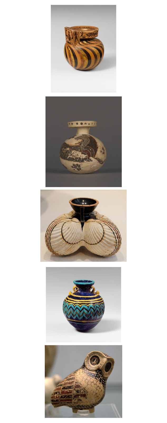 Cel mai important producător antic de aryballoi (pluralul de la aryballos) au fost corintenii, dat fiind avântul luat de negoț, în special de comerțul cu materiile prime ce intrau în compoziția produselor parfumate și care proveneau din cele mai îndepăratate zone ale lumii - așa cum era ea cunoscută atunci. Influențele îndepărtate, asiatice, se regăsesc în stilul orientalizant adoptat de arta corintică, reflectat în formele tot mai inventive ale vaselor, ce se îndepărtează de stilul geometric atenian, regăsit la recipientele pentru vin, așa-numitele oinokhoai (singular: oinokhoe sau oinochoe, de la oinos „vin” și kheo „a turna, a vărsa un lichid”), extrem de răspândite începând cu secolul al IX-lea î.Hr.